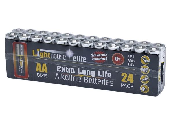 1 x Pack of 24 Lighthouse AA LR6 Alkaline Batteries 2400 mAh.