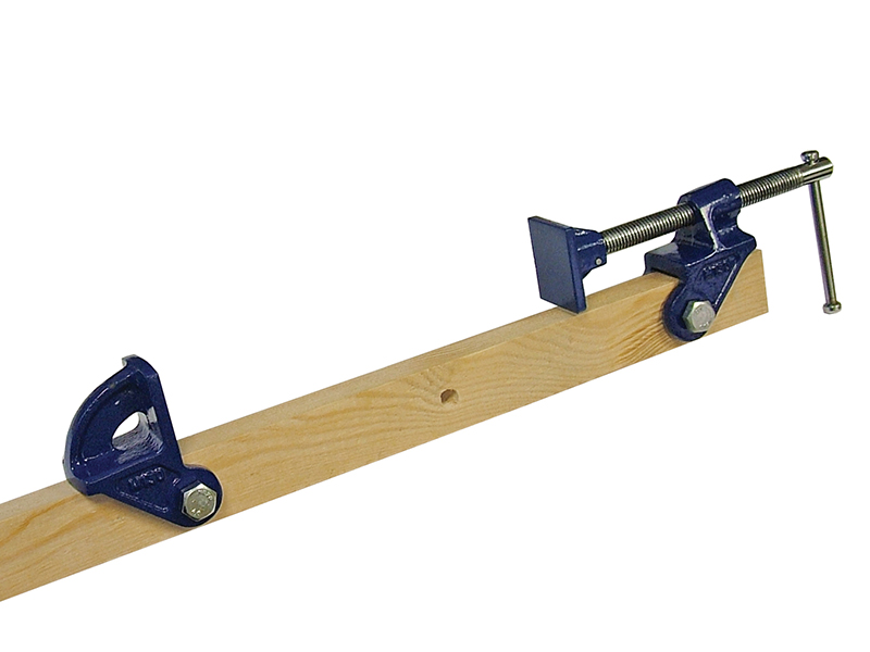 A light-duty clamp, as long and as strong as the timber used, is quickly produced by drilling 2 holes to accomodate the clamp heads. Ideal for clamping large objects such as doors and window frames.