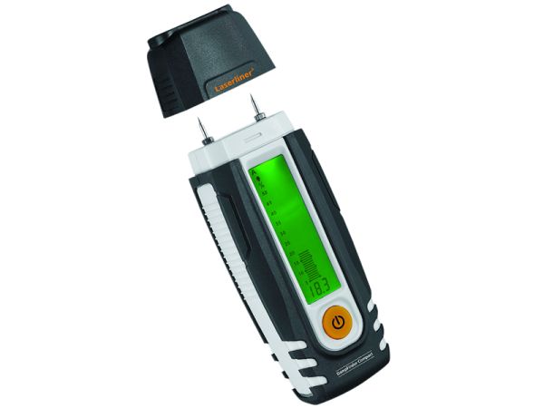 The Laserliner DampFinder Compact is a universal device for ascertaining moisture in building materials and for quick checks when working with wood. It has a triple scale for wood groups A (beech, linden, willow, ebony) and B (pedunculate oak, maple, alder, spruce, birch, ash) and universal index mode. It is suitable for use on aerated concrete, anhydrite screed, cement screed, chalky sandstone, concrete (C12/15, C20/25, C30/37) and gypsum plaster.
