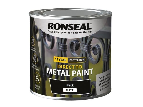 1 x Ronseal Direct to Metal Paint Black Matt 250ml