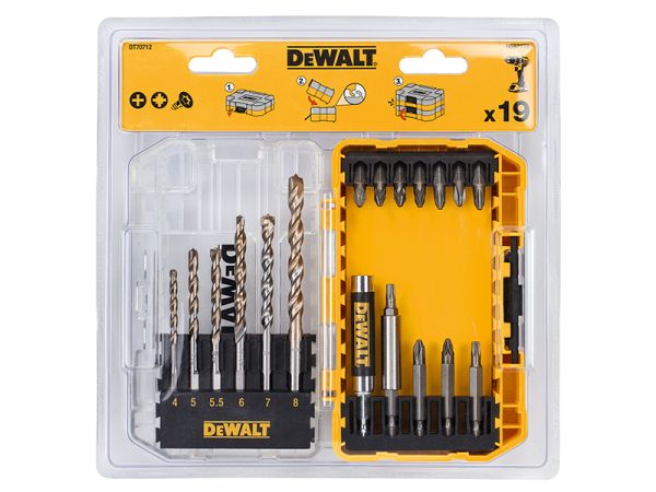 The DEWALT DT70712 Drill Drive Set is supplied in a TOUGH CASE+, this is part of a connectable case system that is TSTAK™ compatible. Individual TOUGH CASES can be clipped together for easy transportation.