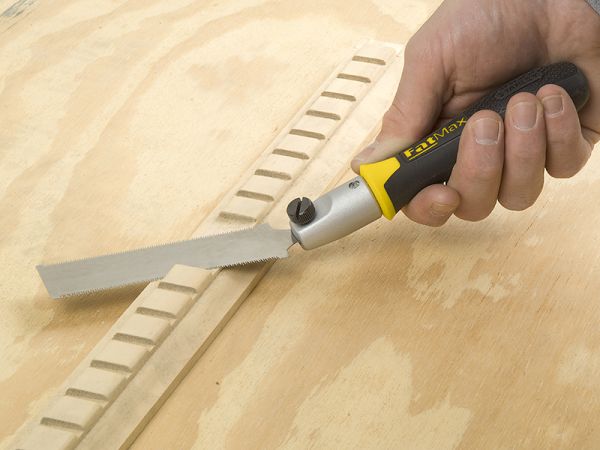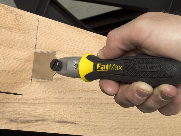 This FatMax® pullsaw has a double sided blade for convenient cutting from the left or the right.