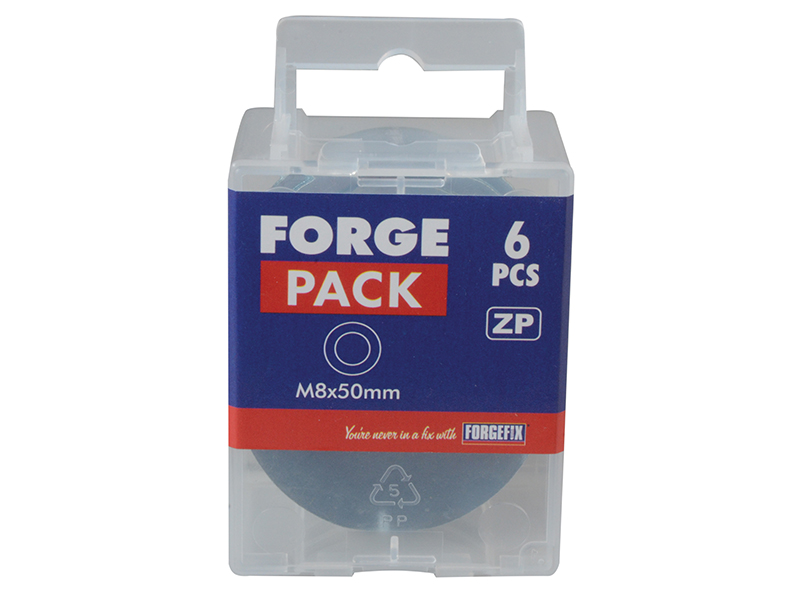 Flat Mudguard Washers ZP M8 x 50mm Forge Pack 6