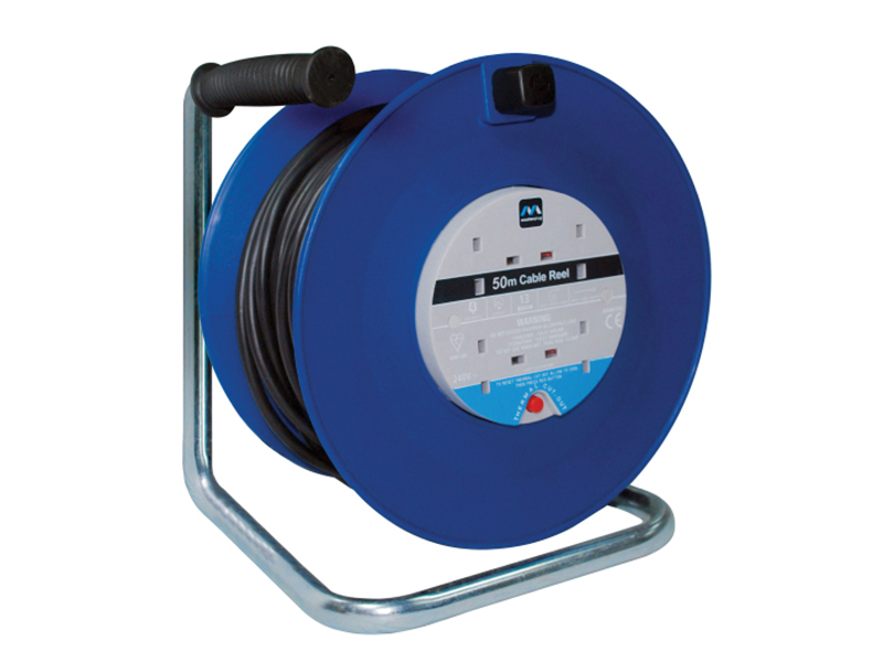 1 x Masterplug Heavy-Duty Cable Reel 240V 13A 4-Socket Thermal Cut-Out 50m