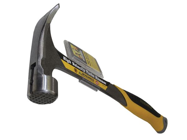 The Roughneck High Velocity Turbo Hammer has a one-piece forged handle construction offering maximum strength and safety. The hammer's special head design and triple injected air cushion grip reduce shock and the transmission of vibrations to the hand and provide a comfortable grip. The magnetic nail holder makes starting easy, especially in hard to reach places. The narrow long shank allows users to strike more accurately at an increased speed. This increased velocity results in higher striking forces at the point of impact and in turn, greater overall tool effectiveness.