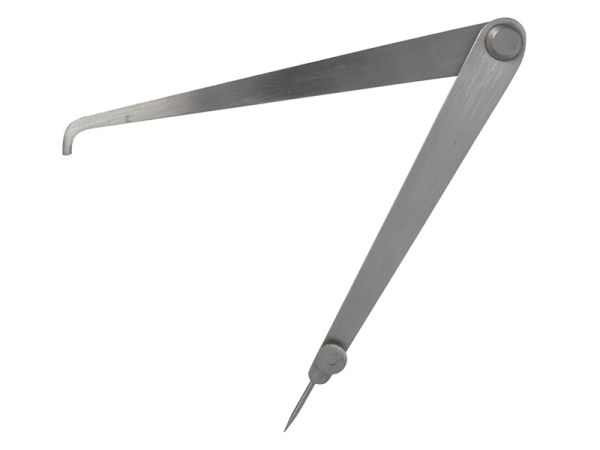 The Faithfull Fixed joint Jenny Calipers are specifically designed to locate the centre of a round or square section of steel. The leg that holds the adjustable point is offset with the locating lug incorporated in the straight leg.