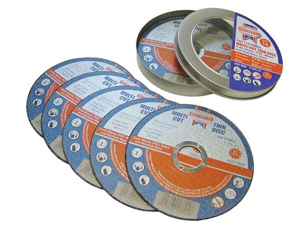 Pack of 10 Faithfull Multi-Purpose Cutting Discs 115 x 1.0 x 22.23mm