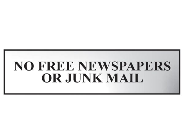 Message: 'NO FREE NEWSPAPERS OR JUNK MAIL'.
