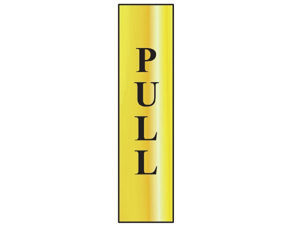 Polished brass effect self-adhesive sign with black text/graphic. Printed using UV resistant inks.