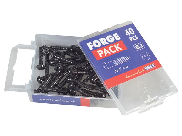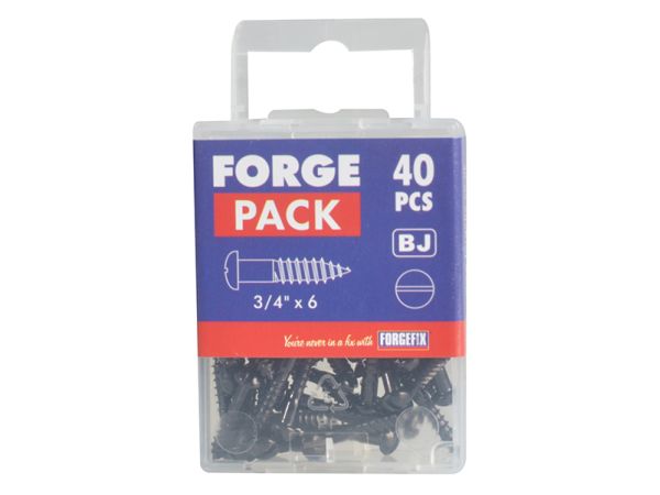 Wood Screw Slotted Round Head ST Black Japanned 3/4in x 6 Forge Pack 40